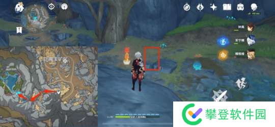 观景点在山洞下方石块处,旁边有只浮游水蕈兽