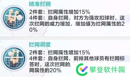 接下来,1号位潜能主属性有拦网,接球,强攻,快攻,传球五种属性;2号位主属性有发球,传球,意识,强攻,快攻;4号位主属性有接球,救球,拦网,反应四种属性;6号位则是拦网,接球,快攻,强攻,传球,救球,进攻技巧和防守技巧八种属性。副属性所有的属性都可能出现,并且在一个潜能没有四词条的情况下每升3级会增加一条新的属性,满词条后增加副属性数值,由此我们可以开始所有主流角色潜能推荐了。