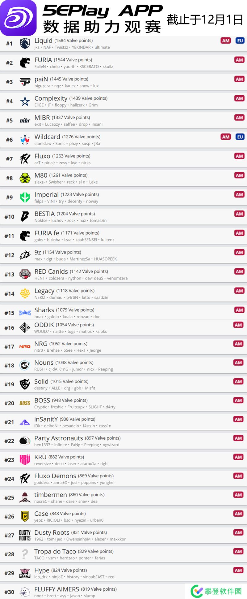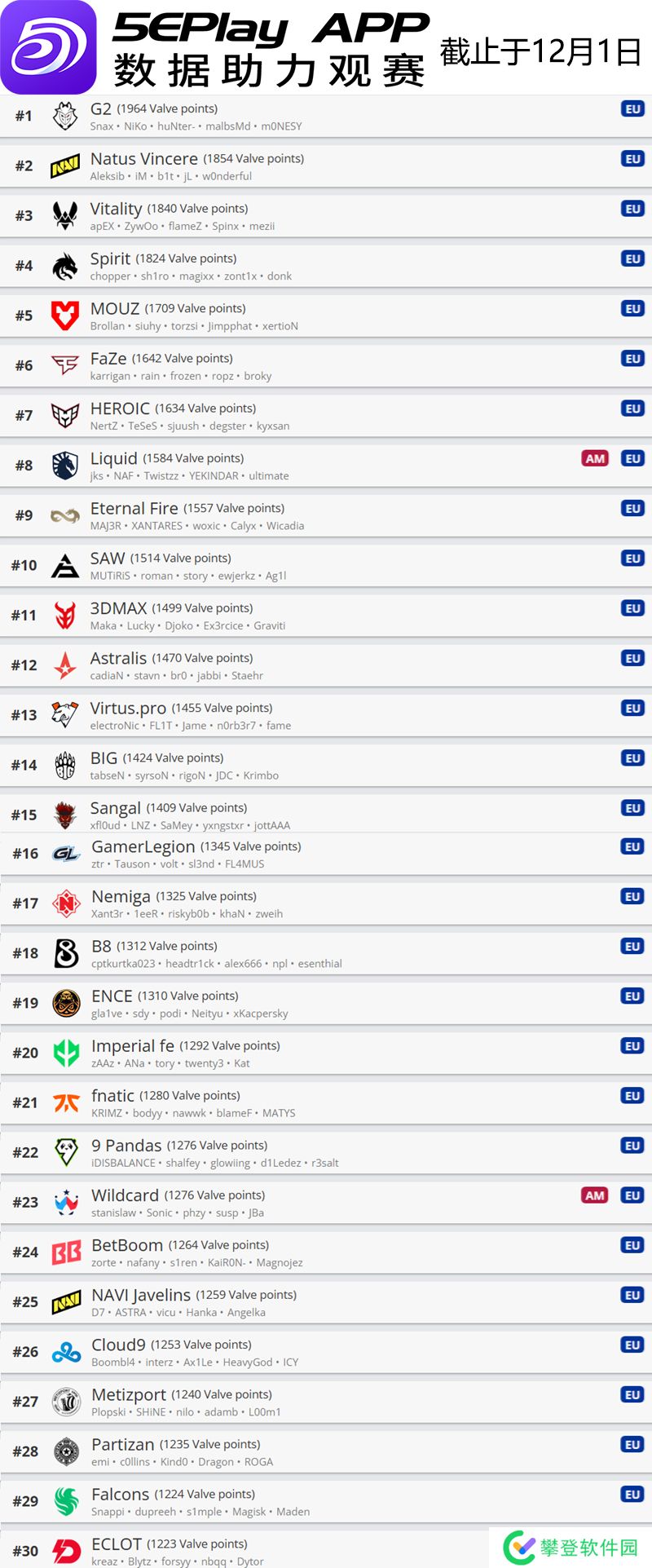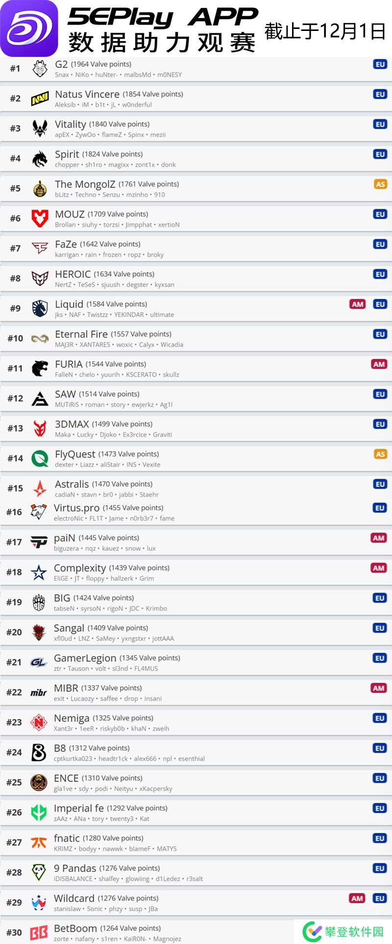 今天V社更新了旗下CS世界排名,这一世界排名会和明年的赛事邀请紧密联系,因此是主办方和战队都必须关注的内容。