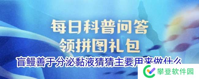 支付宝神奇海洋11.9答案:题目:盲鳗善于分泌黏液,猜猜主要用来做什么?