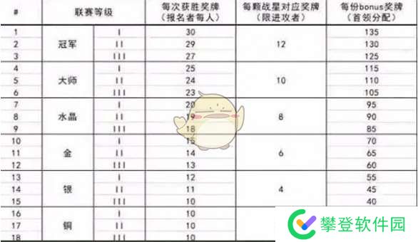 4、奖励上限取决于所在联赛的对位和赛季结束时的排名。