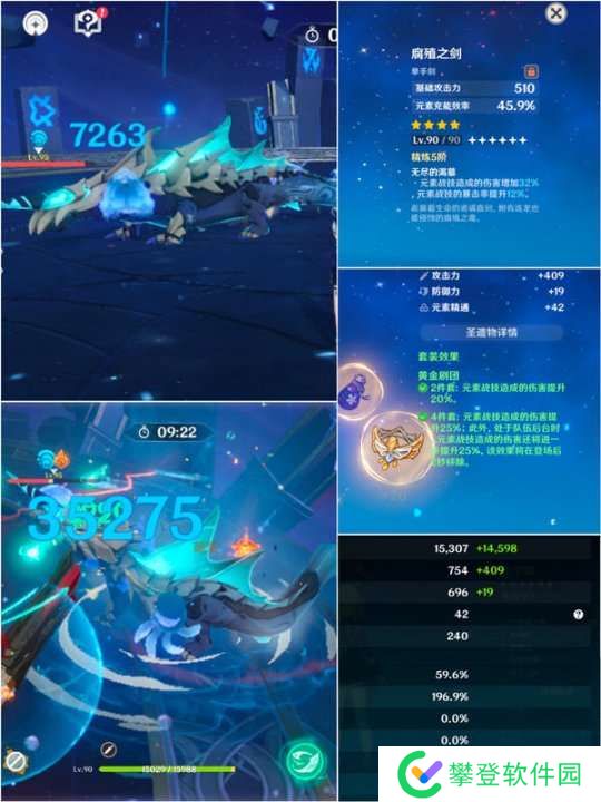 可以看出,对于练度一般的0+0恰斯卡,其实两套圣遗物伤害相差不大,放到整个队伍来看,对总伤害贡献基本相当。