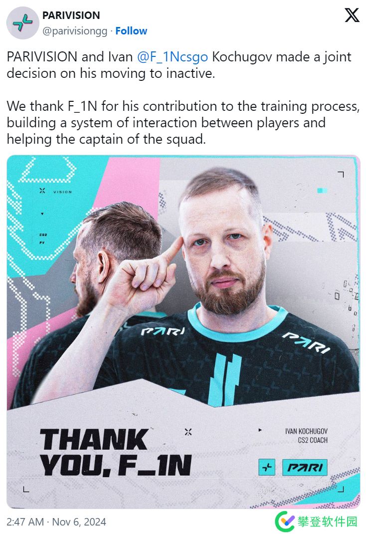 PARIVISION参加上海Major的欧洲区RMR已经不远,但他们还是下放了队内教练F_1N。