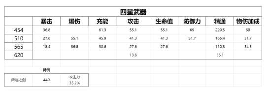 具体到每种武器类型,与五星武器相反,四星武器的双爆属性是非常稀缺的,要么是大月卡武器,要么是星尘兑换。获取较为困难。需要“氪服困难”。