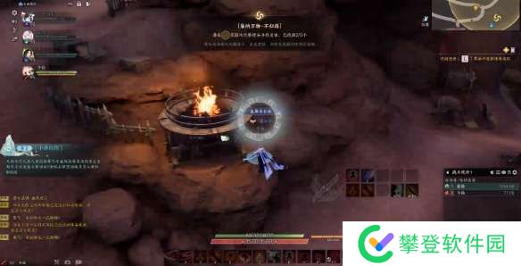 2、往下面飞过去,看到一堆篝火,这里有灵体。