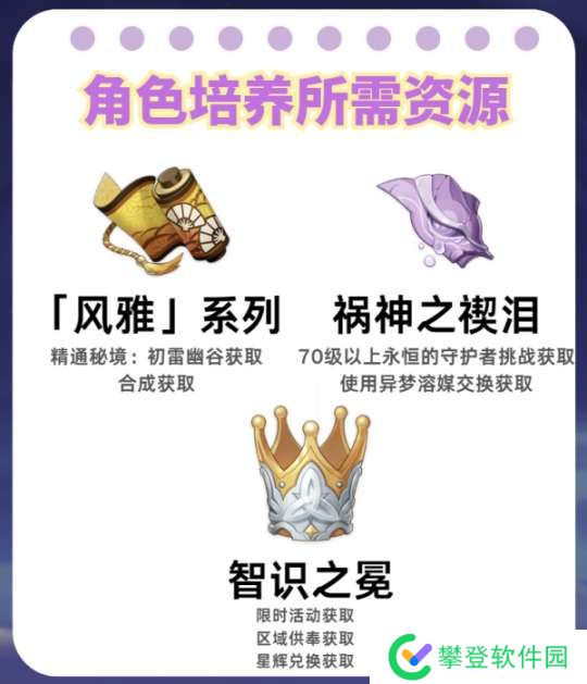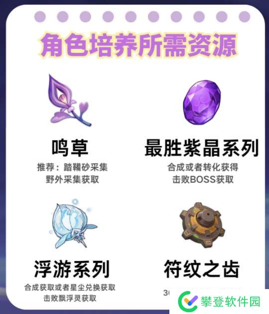 本版块带来角色基础信息和培养材料(及其来源)的介绍。