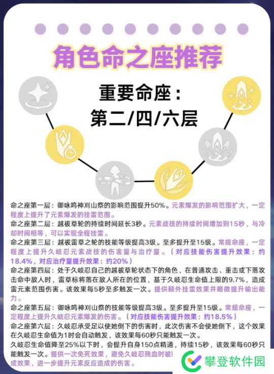 久岐忍的核心命之座是二/四/六层,有充足原石储备的旅行者建议以这些命之座为目标进行抽取~