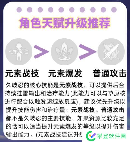 优先级程度:升级元素战技即可,元素爆发、普通攻击可以不升级。
