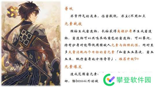 一、钟离的综合定位钟离是原神中非常厉害的角色。他使用的武器是长柄武器,属性是岩元素。他的元素战技可以提供大量护盾,还能提供一些辅助效果。他的元素爆发可以提供非常稳定的控制效果。如果你使用钟离,能够在游戏中体验到非常不同的感觉,极大地提高游戏的乐趣。如果你还是一个新手,自己的操作能力有限,面对一些高伤害的敌人可能会感到非常困难。但如果你有钟离的话,就可以充分地体验游戏的乐趣,并且能够更轻松地击败敌人。可以说,钟离是原神中最强的护盾提供者,没有任何一个角色能够与他媲美。