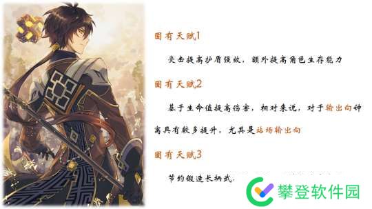 备注:输出向钟离,需要区分是否需要站场输出。如果需要站场输出,那么钟离的优先级和璞鸢相似,因为和璞鸢需要站场才能叠层。如果是后台输出,旅行者携带决斗之枪和护摩之杖是更好的选择,可以提高元素爆发和共鸣伤害。个人推荐旅行者携带西风长枪,圣遗物宜多选暴击。钟离的护盾厚实,即使不带生命武器,也只有寥寥几个敌人能在元素战技冷却时间内将其击破。