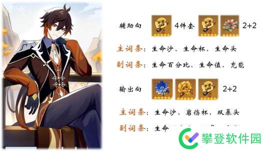 备注:如果钟离是0命,则4千岩可能会存在不能稳定触发的情况,因为钟离同时只能创造一个岩造物,当然,即使是1命,能同时创造两个岩造物,在某些场地,如纯水精灵的挑战地点,因为本身地形限制不允许创造岩造物,或者某些敌人(若陀龙王等)可以破坏岩造物的情况下,4千岩也不能稳定触发,因此纯粹的辅助向钟离多数情况下更适合2千岩+2花海,稳定的40%生命值提升,我个人更推荐旅行者将钟离当作辅助使用,当然旅行者非常喜欢用钟离,则可以输出向使用