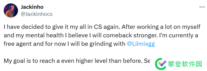 “我决定再次全力以赴地投入CS。在经过大量自我提升和关注心理健康后,我相信我会以更强的姿态回归。目前我是一名自由选手,现在会与