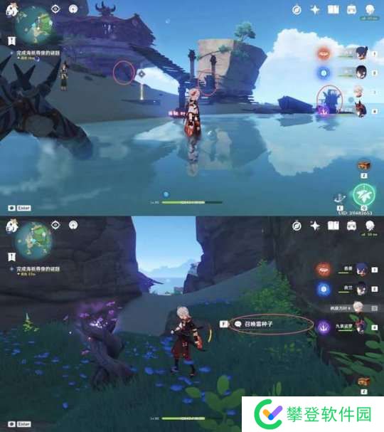 首先我们需要激活三个元素方碑解锁石柱雕像,分别是两个雷元素和一个水元素,其中一个雷元素方碑在雷屏障里,需要我们携带雷种子进入激活,雷种子在丘丘人营地的背后。