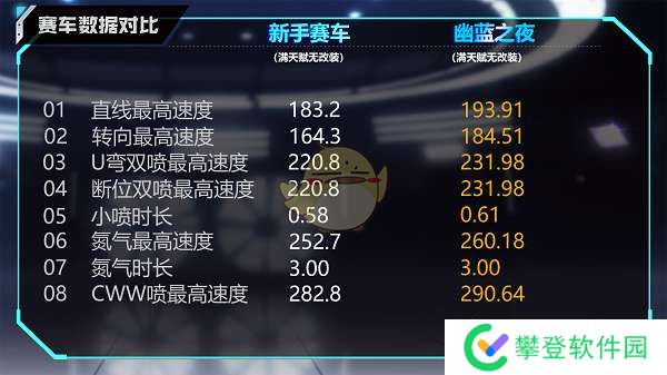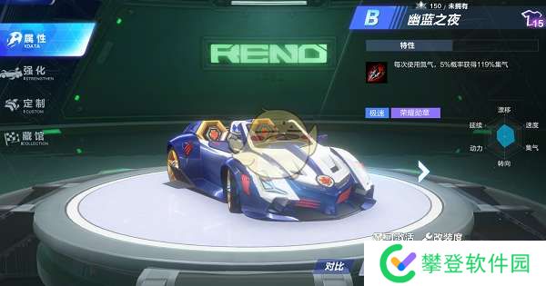 幽蓝之夜的赛车特性实用,每次释放氮气都有较低概率获得大量集气,在竞速赛中,一旦触发就可以获得氮气,从而快速超越对手。