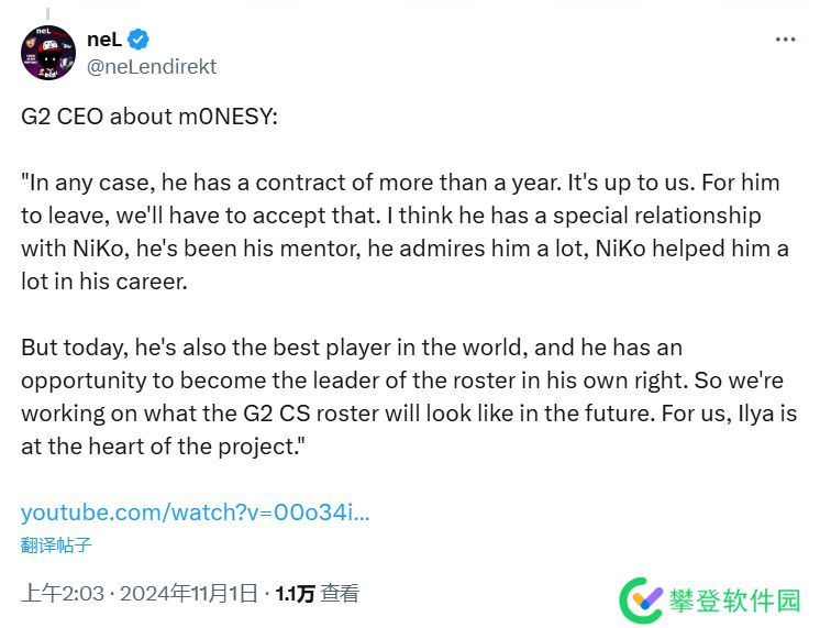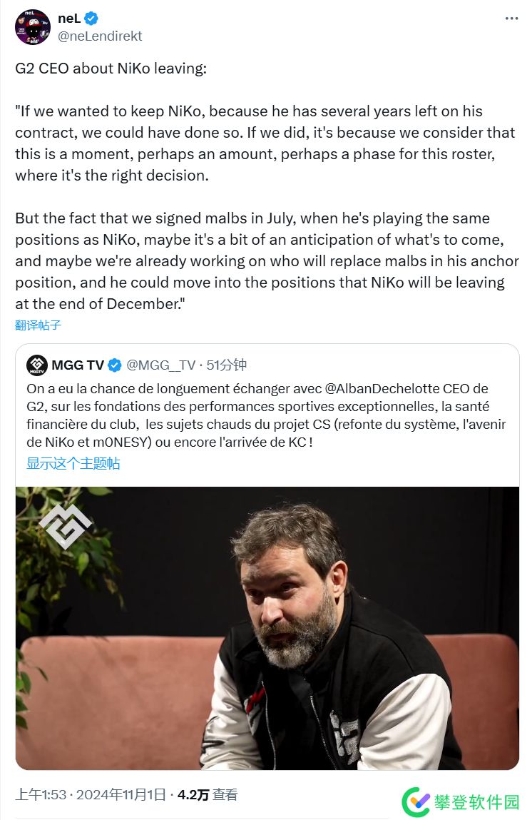 G2的CEO关于NiKo离开队伍的说法、以及m0NESY的状况。