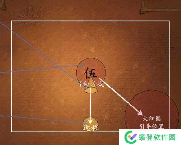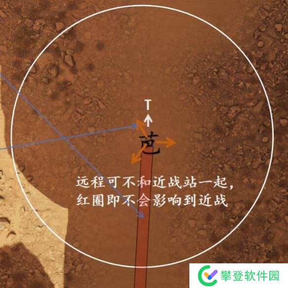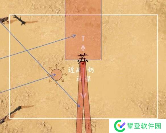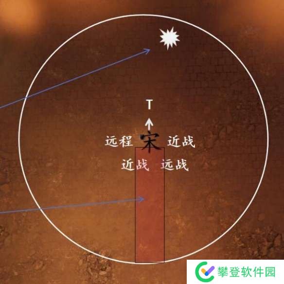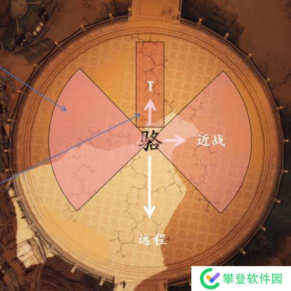 朝着当前方向释放半径为8尺60°的黄色小扇形造成外功穿透伤害可被分摊。