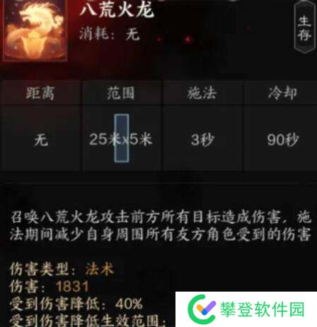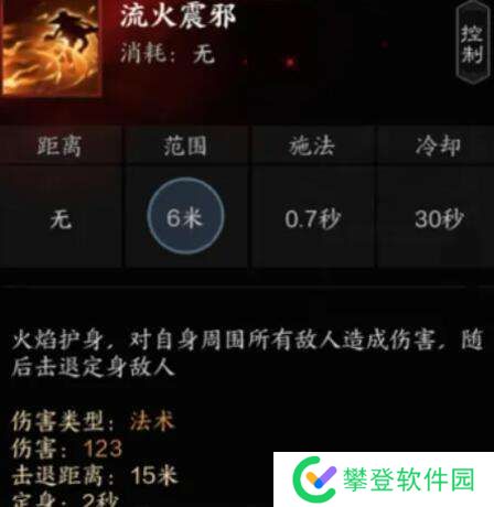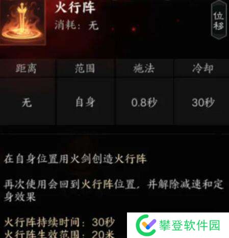 6、火行阵:位移技能,在当前位置创造火行阵,再次使用可回到火星阵位置