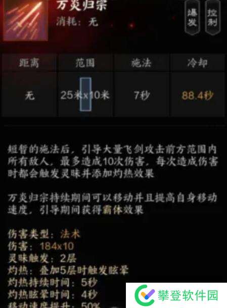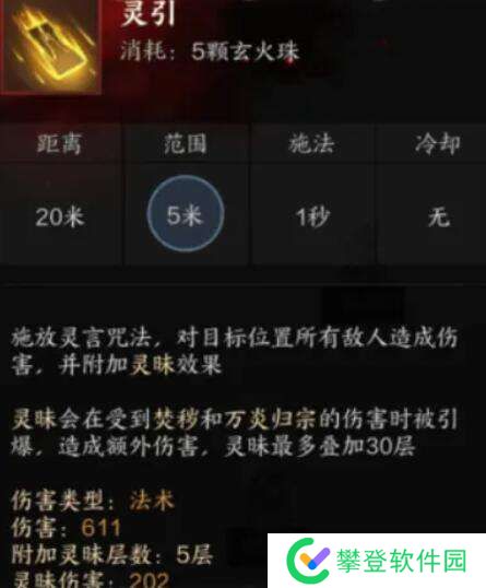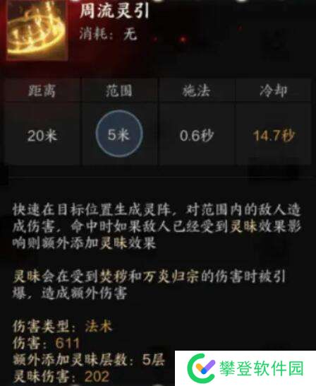 1、灵引:范围技能,消耗玄火珠附加灵昧DOT