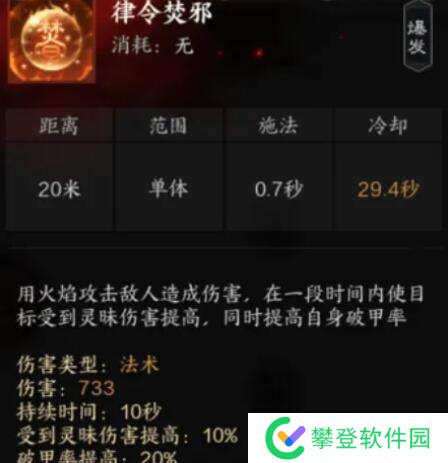 6、律令焚邪:天书三选一技能,单体技能,爆发技能