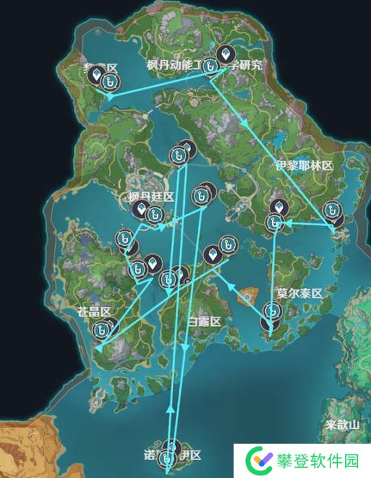 路线10为甘露饵合成材料采集路线(无郁稠林及卡萨扎莱宫香辛果)