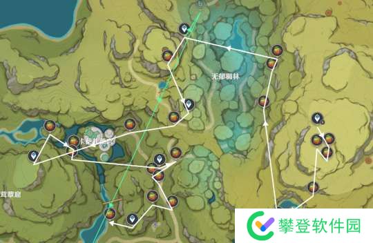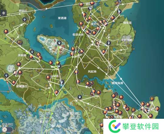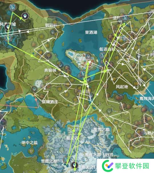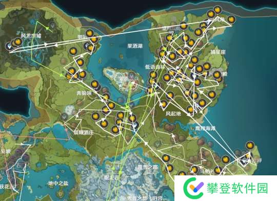 路段2为果酿饵合成材料采集路线(蒙德地区日落果)