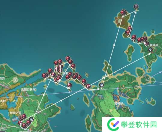 路线9为飞蝇假饵合成材料采集路线(马尾及绯樱绣球全收集)