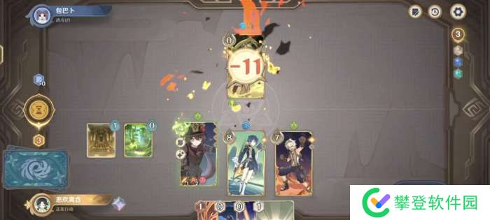 胡桃平A,造成3点伤害,水帘剑协同造成1点伤害