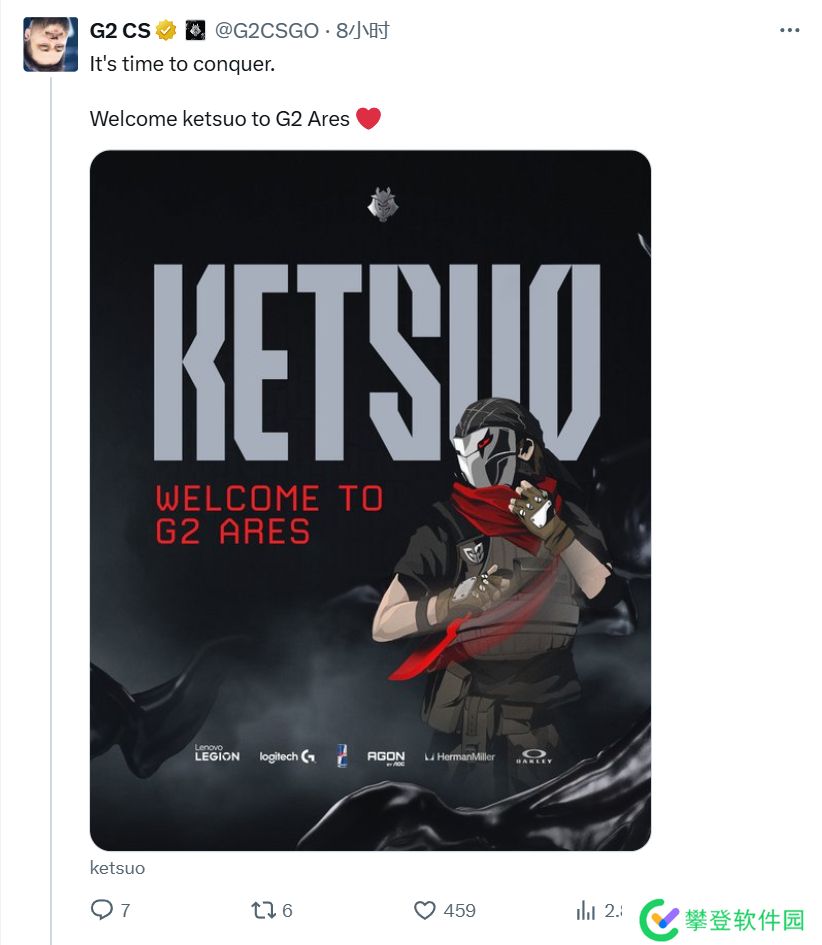 G2:“是时候开始征服之旅了。欢迎Ketsuo加入G2 Ares。”