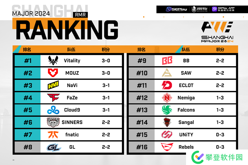上海Major欧洲RMR A组第三日比赛已经结束,今日四个传奇组名额全部出炉,分别为