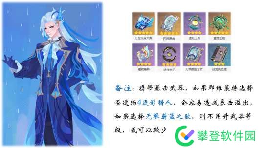 通常情况下,那维莱特会选择4逐影猎人。但如果旅行者的那维莱特暴击率非常高,达到80%以上,可以考虑使用4乐团或4沉沦圣遗物。而4逆飞的流星适用于0命那维莱特、携带护盾、暴击率过高三个条件同时满足的情况下,并不适用于大多数旅行者拥有的圣遗物和条件。