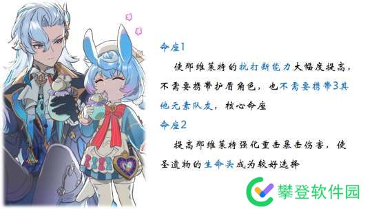 那维莱特1~5命,通常与芙宁娜、万叶和希诺宁配队固定。在银河战舰中,若缺乏芙宁娜,其他队伍表现相对较差。但这支队伍无论面对何种敌人,只要没有水元素免疫,均可使用并轻松击破敌人。命座越高,效率越高,即使面对枫丹岩盾地方传奇也能轻松击杀。