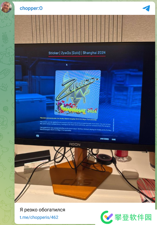 此外,chopper还在社交媒体上分享了自己开出的ZywOo金色贴纸:“我发财喽!”