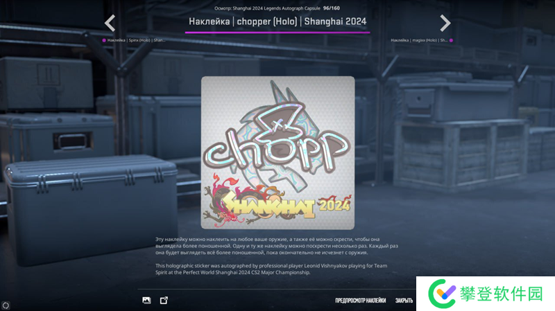 Spirit战队指挥chopper分享了自己对新贴纸的看法。他表示非常喜欢这次上海Major的贴纸设计。