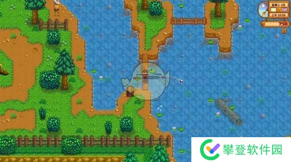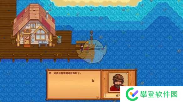4、获取鱼竿可以前往河边钓鱼,钓到的鱼还可以卖给威利换钱。