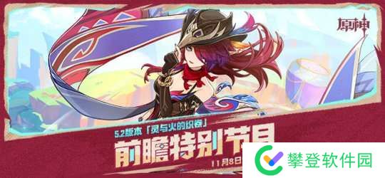 《原神》5.2版本【灵与火的织卷】前瞻特别节目将于11月8日(本周五)20:00正式开启。