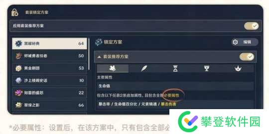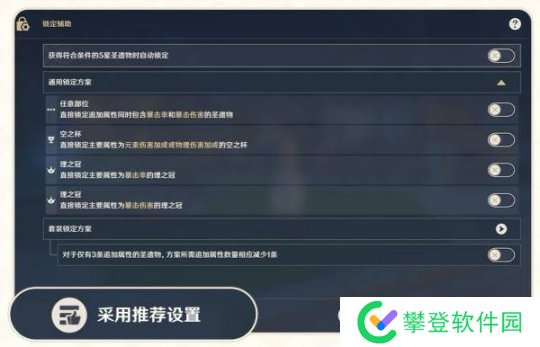 推荐的「通用锁定方案」和「套装锁定方案」均已按照常见用途设置好自动锁定的属性。并且随着游戏的更新,开发组还会对推荐套装方案进行调整,无需旅行者重复操作。如果想要方便省事,可以直接一键开启;如有更细致的个性化需求,可以给各套装或部件设置单独的方案。