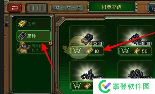 3、在付费充值页面,找到黑砖,使用金砖即可兑换黑砖货币;