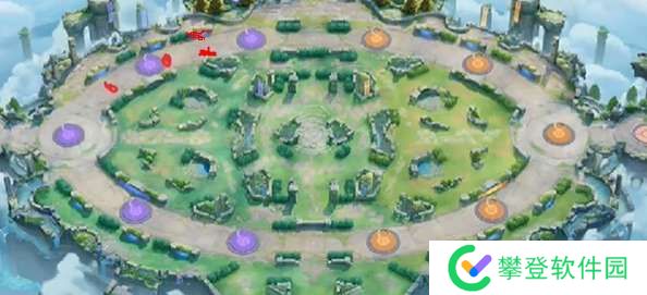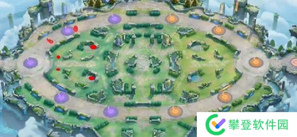 1、图中红色点位置有野怪,开局需要先将4只野怪击杀。
