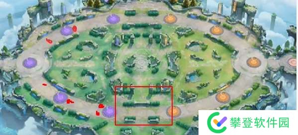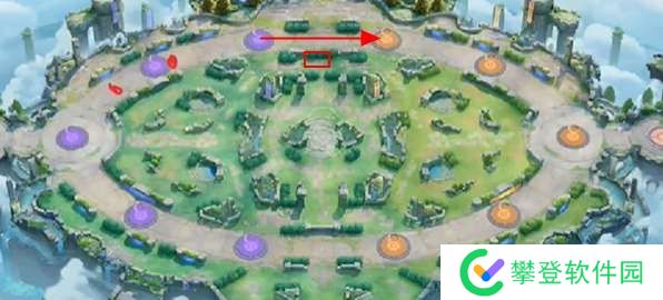 3、或者让队友站在图中方框处,将野怪抢了,然后去箭头处投分。