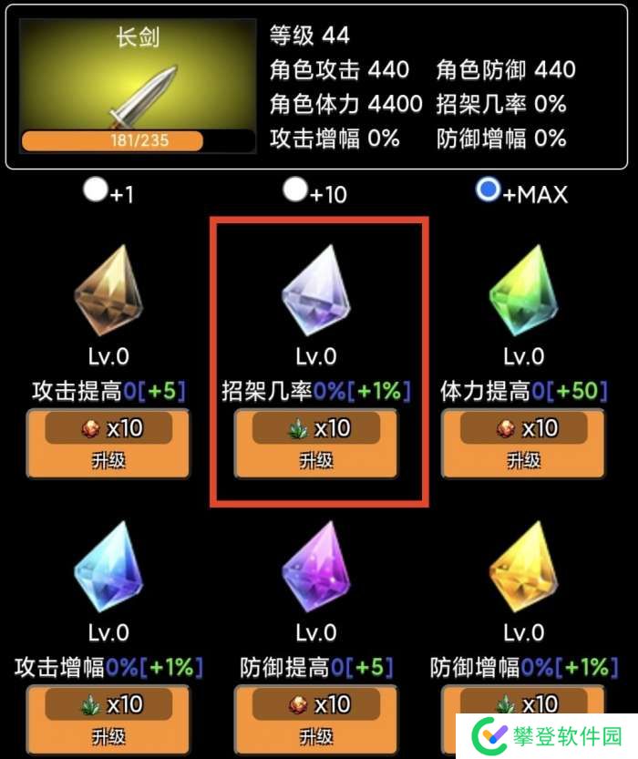 体力>防御>攻击 图中【长剑等其余三个】【等级影响研磨等级】