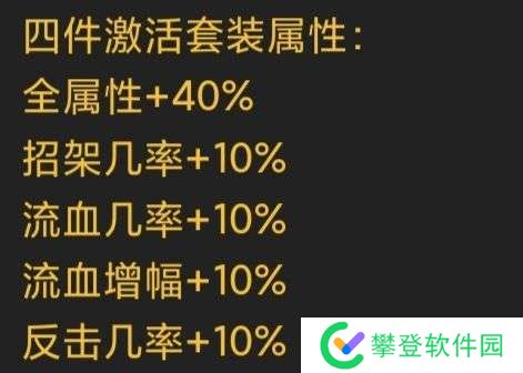 流血几率=招架几率=反击几率 连击=体力吸取&回复=减伤=流血伤害 流血几率&伤害 : 增加流血几率和概率(优先) 招架&减伤 : 减少受到的伤害 体力恢复&吸取 : 提升生存能力 连击&反击: 增加额外攻击次数