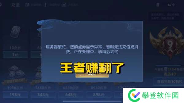上图就是充值系统崩溃的图片,能看到,显示服务器繁忙,出现这个情况的原因只有一个,就是参与活动的玩家实在是太多了,导致王者荣耀的抽奖服务器一时间出现了卡顿。