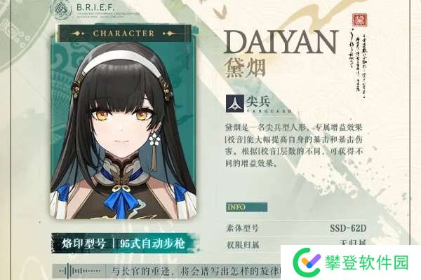 少女前线2追放黛烟怎么样?黛烟是一个非常实用的角色,在游戏中,她是一名尖兵型人形,专属增益效果校音能大幅提高自身的暴击和暴击伤害,根据校音层数的不同,可获得不同的增益效果。