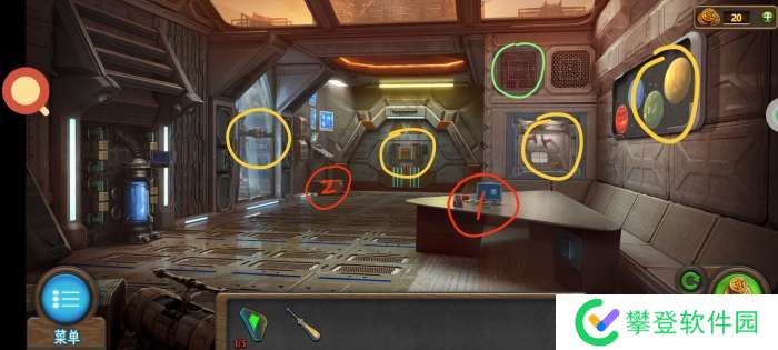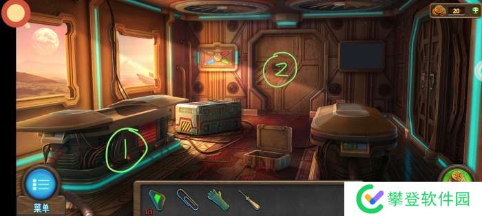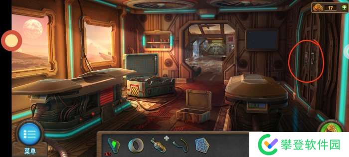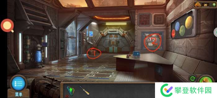 红圈处使用绿零件,完成小游戏。穿上太空服进入场景3。