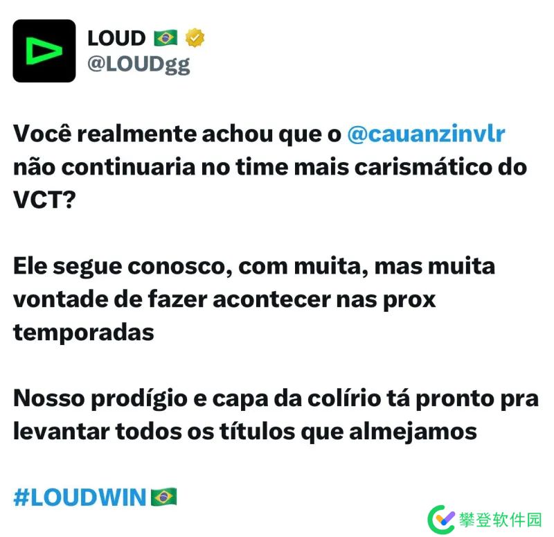 LOUD战队宣布Cauanzin将留队,继续征战2025赛季。战队表示他将带着强烈的意志迎接未来的挑战,目标是为团队争夺更多冠军头衔。原文如下: