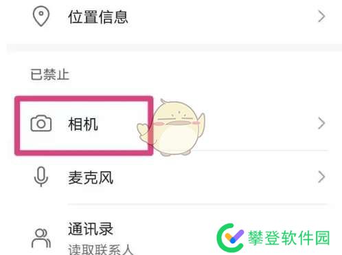 5、进入新页面,点击“权限”,页面跳转后点击“相机”进入下一页面,最后点击“允许”即可。