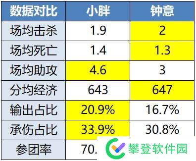 钟意这边,虽然在带替补阵容时候“融入得很快”,但整体数据在年总打野里依旧是名列前茅:分均经济排名第一,KDA在排名第三,场均击杀、参团率排名第二。英雄池方面,钟意的大司命虽然没有小胖、花海那么高的KDA,但也有5战4胜的高胜率。在坦野的使用场次和胜率上,钟意无疑是略胜一筹的:小胖上一把险些超鬼的元坦,在钟意手里是个夏季赛6战5胜、年总5战3胜的招牌;一手7战4胜的夏侯惇在FMVP打野里胜率仅次于北京WB的暖阳;白起、八戒这类偏冷门的坦野钟意在擂台赛也都拿出来并取胜了。如今已是FMVP打野的钟意,今晚面对小胖能打出怎样的表现呢?让我们拭目以待!