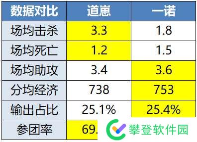 道崽在上一场对阵济南RW侠的比赛里算是感受了一回“核心待遇”。在擂台赛阶段,道崽的公孙离和鲁班七号全部是100%胜率KDA发育路第二。到了淘汰赛,公孙离被行天教练抢1局ban4局,鲁班七号的核心配件鲁班大师更是抢1局ban5局,两大招牌一个都拿不到。但即便如此道崽在这场BO7里也没有被济南RW侠抓到任何机会,巅峰对决在对方有少司缘加持的情况下,依旧靠着个人能力打回局势,不愧为年总发育路场均击杀断档第一。