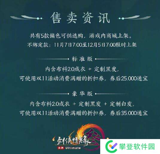 不绑定款(5种偏色):11月7日7:00-12月5日7:00限时上架
