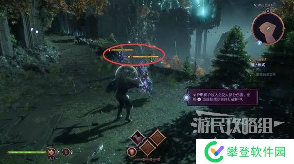 使用重攻击(战士是挥盾)可以打破敌人的护甲(黄色)。